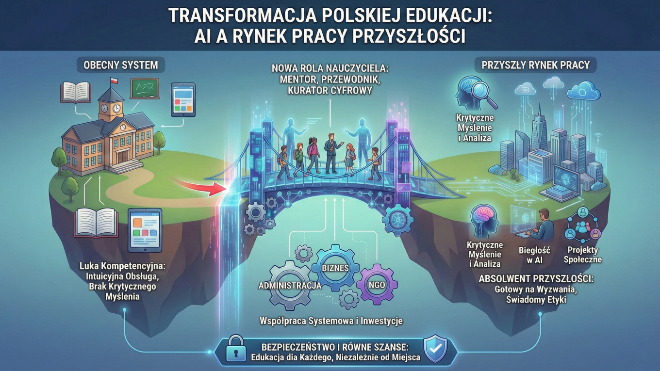 Zasadniczo nikt już nie ma chyba wątpliwości, iż system edukacji w Polsce musi ulec transformacji. W tym kontekście bowiem koniecznością jest, aby system nauczania uwzględniał rozwiązania proponowane przez Sztuczną Inteligencję. Jest to wszystko niebywale istotne, by osoby wchodzące na rynek pracy w przyszłości odnalazły tam swoje miejsce.
